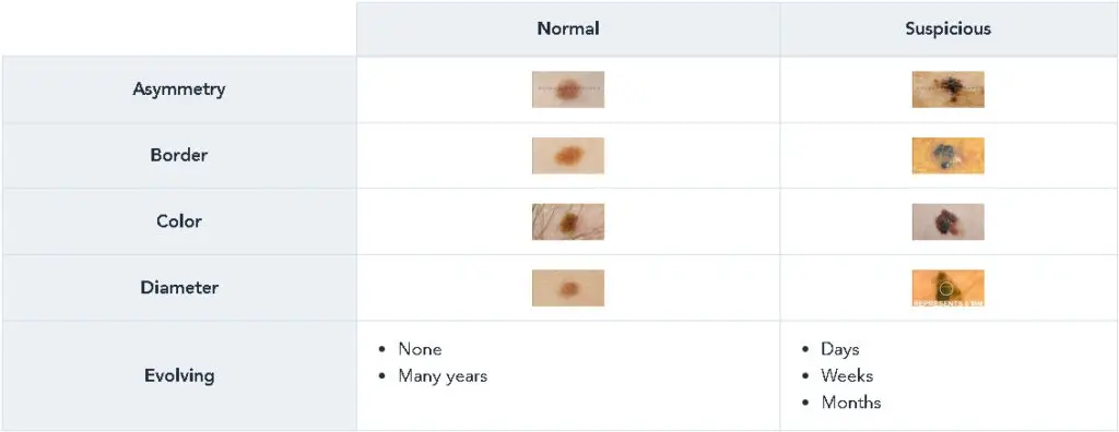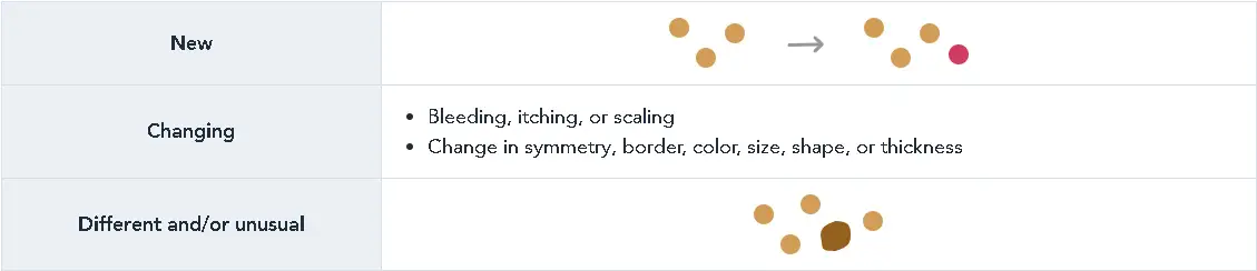 When inspecting your skin for any moles, growths, or spots, look for these signs.